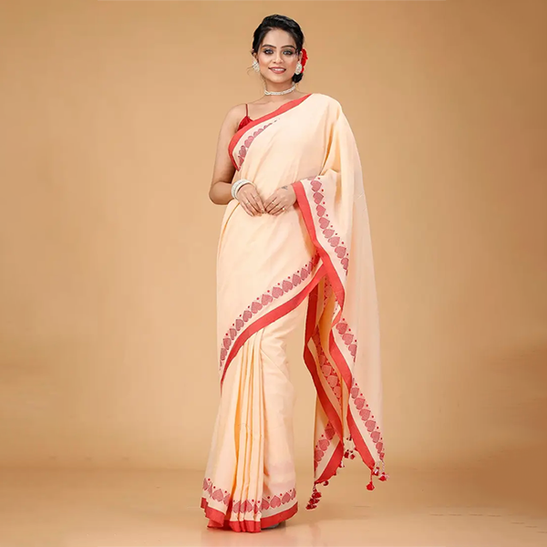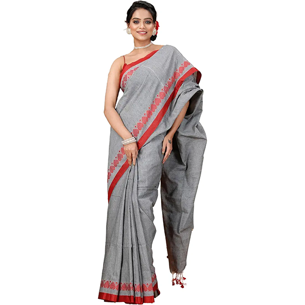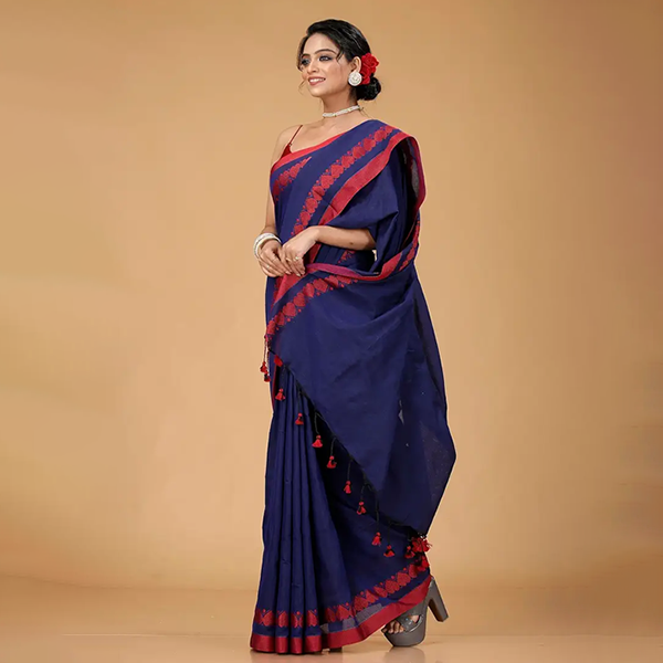 Bring charm to your daily style with the Love Motive Khadi Saree, a perfect blend of comfort, tradition, and timeless fashion. Crafted from soft blended fabric, this saree features elegant weaving patterns with delicate tassel detailing, offering a refined and graceful look for your everyday wardrobe.