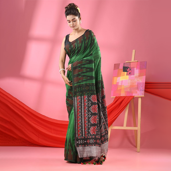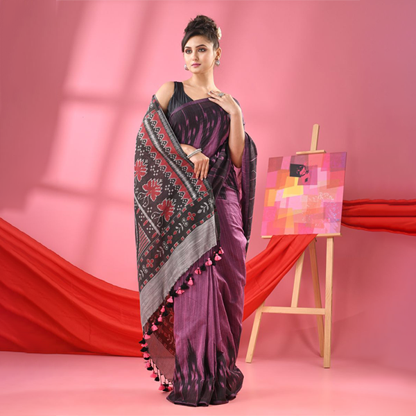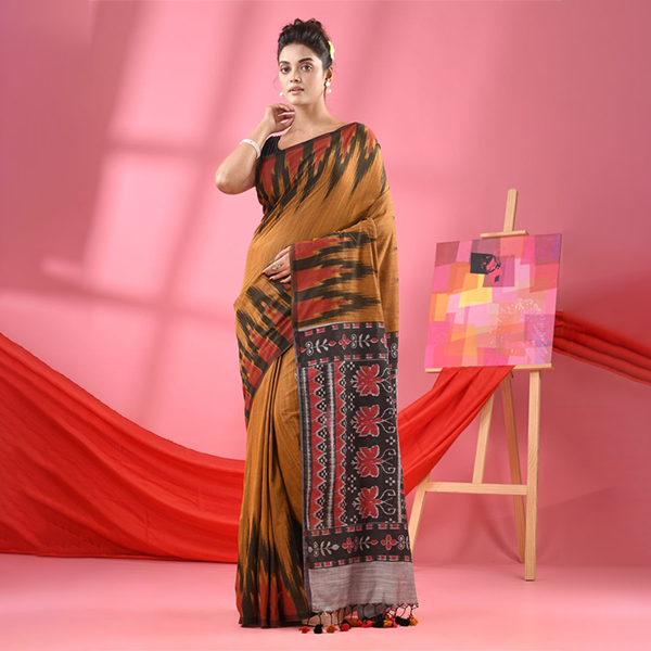 Infuse your daily wear with timeless tradition through the Sambalpuri Print Khadi Saree — a beautiful blend of heritage prints and everyday elegance. Crafted from soft blended fabric, this saree features iconic Sambalpuri-inspired prints with delicate tassel detailing, making it a graceful choice for women who love comfort with a cultural edge.