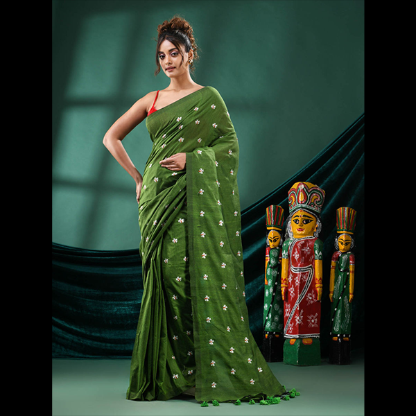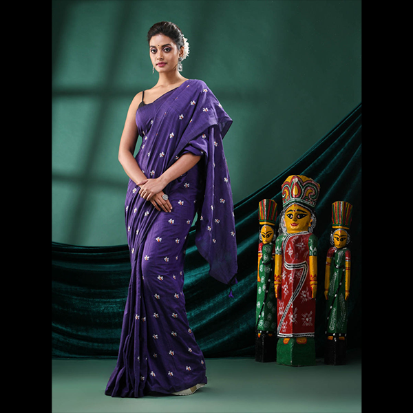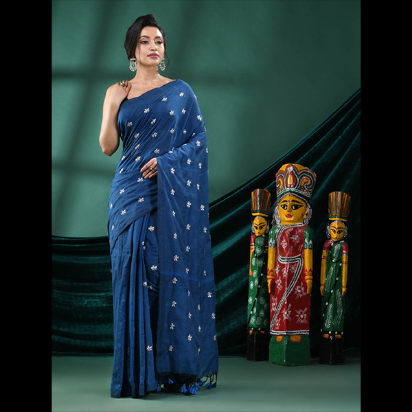 Step into grace and subtle charm with the Shiewliful Embroidery Khadi Saree, a perfect blend of delicate craftsmanship and everyday comfort. Made from soft blended fabric, this saree features beautiful embroidered detailing paired with classic tassel work, making it a stylish addition to your ethnic wardrobe.