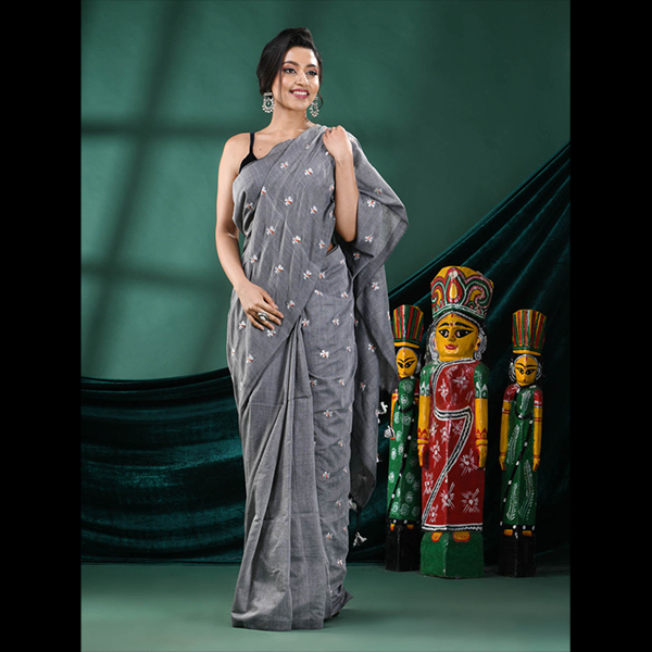 Shiewliful Embroidery Khadi Saree – Effortless Elegance in Everyday Wear